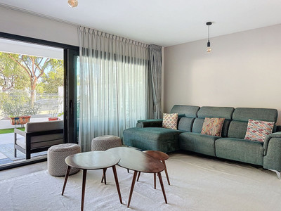 Thoughtful improvements have been made to create a cozy, elegant atmosphere, with an open-plan living area filled with natural light and a fully equipped kitchen for preparing meals and entertaining. For ultimate comfort, the apartment includes efficient aerothermal heating and cooling, and residents enjoy access to exclusive amenities, such as adult and children’s pools, a gym, and a relaxing sauna.