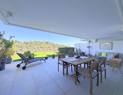 Fantastic ground-floor apartment with a spacious private garden and open views of the sea and the mountains, located in Estepona, within a contemporary residential complex completed in 2021. The property is just a five-minute drive from the town center and is also connected by an interurban bus line. It is conveniently situated only fifteen minutes from Sotogrande and Marbella, with easy access to the main highway.