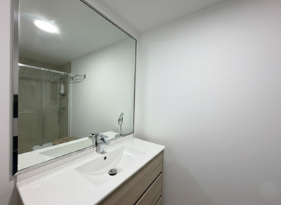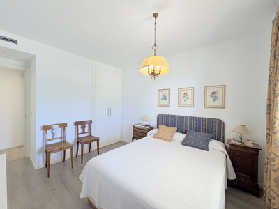 The property is presented in impeccable condition, with renovations and high-quality finishes throughout. The living room, dining area, and fully equipped kitchen form an open and functional space, enhanced by custom-built cabinetry that maximizes storage. From here, there is direct access to a spacious covered terrace, ideal for year-round enjoyment. Notable features include electric shutters with a locking security system.