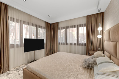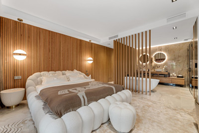 Just 100 meters from Guadalmansa Beach, this apartment opens onto a spacious hall leading to a fully equipped kitchen and a bright and elegant living-dining room, ideal for entertaining. It features three bedrooms, two of them with a full en-suite bathroom and dressing room, plus a separate bathroom.
