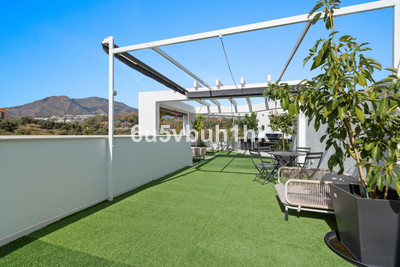 In the heart of Estepona, within the prestigious Estepona Gardens complex (2023), this elegant and bright four-bedroom duplex penthouse is offered for sale. The property is entirely exterior, featuring mountain views and partial sea views.