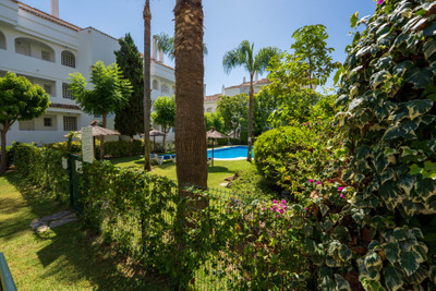 Wonderful ground floor apartment in Guadalmina Baja, San Pedro de Alcántara, with a garden area and covered terrace facing east to enjoy sunny mornings and cooler afternoons, located next to the golf course.