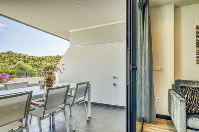 Wake up to stunning sea and mountain views, step onto your private terrace with garden, and enjoy the Mediterranean breeze all year round. Stylishly furnished and fully equipped, this apartment is move-in ready, featuring a modern kitchen with Bosch appliances, designed for both comfort and functionality.