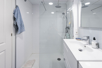 From the main terrace, you can enjoy views of the communal swimming pool and landscaped gardens, while the front terrace, accessible from the bright living room and the master bedroom, has been enclosed with Lumon glass curtains. This additional space creates a perfect area for reading, dining, or simply enjoying the panoramic views of La Duquesa Golf Course, the surrounding mountains, and the peaceful Andalusian countryside.