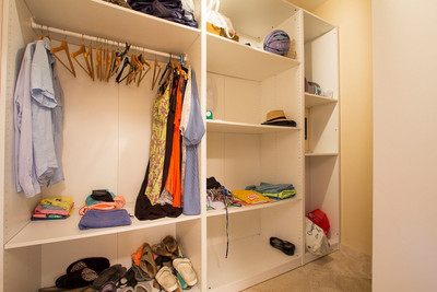 The master bedroom, generous and bright, also has direct access to the terrace. It features a dressing area as well as a large en-suite bathroom equipped with both a shower and a bathtub. The second bedroom benefits from spacious built-in wardrobes.