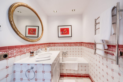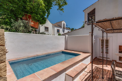 The apartment, fully renovated in 2021 with a rustic Andalusian style, features hand-painted tiles, premium marbles, and high-end finishes throughout. It includes two spacious bedrooms with ensuite bathrooms, heated floors, and towel rails. The master suite opens onto a terrace with a private pool and built-in barbecue, creating seamless indoor-outdoor living.