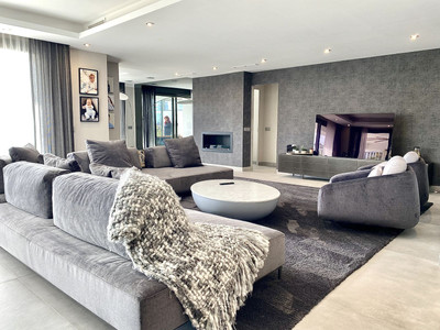 Probably the most unique and spacious apartment in the whole Los Flamingos! Stunning 4-bedroom apartment nestled in Tee 6, offering breathtaking views of the serene golf course and the sea near Villa Padierna 5-star Hotel. Originally two separate 2-bedroom units were joined together and have undergone a luxurious renovation, elevating tyhe residence to an exceptional standard of living.