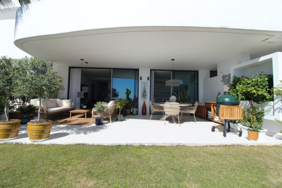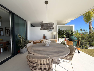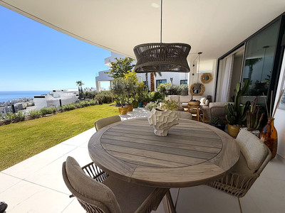 Bathed in southern sunlight and framed by panoramic sea and mountain views, this exceptional ground floor residence represents contemporary luxury elevated by five-star amenities. Situated within an exclusive gated urbanisation, the property blends refined architecture, advanced technology, designer interiors, and a full wellness lifestyle.