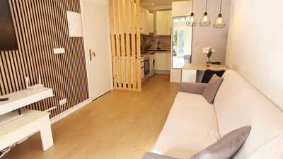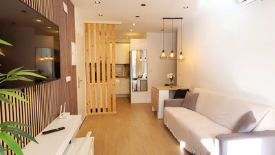Cozy ground floor corner apartment for sale in Doña Pilar, completely renovated! This property offers a modern open plan design with fully equipped kitchen, lounge dining with access to the terrace, 2 bedroom, and one bathroom with large italian walk in shower. The apartment offr new plumbing, new electric, new floor, new doors, spots lights, A/C, double glazed windows, all very well presented. The terrace is facing the lovely pool area with plenty of place to eat, sunbathe, and with grass all around. It is walking distance to transport and five minutes driving to the Fuengirola beaches. Ideal as a holiday place for a family!