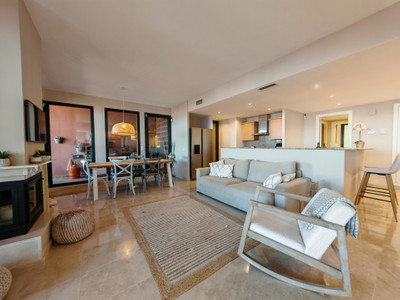 Ground Floor Apartment for sale in , Mijas Costa with 3 bedrooms, 2 bathrooms, 1 on suite bathroom and 1 toilet, with communal swimming pool and private garage (1 parking spaces). Regarding property dimensions, it has 109.7 m² built and 42.19 m² terrace. Has the following facilities mountainside, amenities near, transport near, air conditioning, fully fitted kitchen, fireplace, marble floors, double glazing, guest toilet, sea view, country view, covered terrace, fitted wardrobes, gated community, lift, garden view, panoramic view, street view, close to children playground, close to golf, balcony, excellent condition and close to schools.