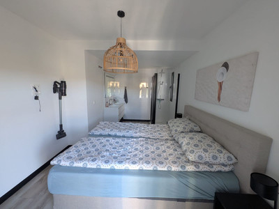 Inside, the apartment showcases a modern, high-end interior with quality finishes throughout. The spacious designer kitchen is fully equipped with top-quality appliances, combining functionality with contemporary style. Comfort is guaranteed with air conditioning, underfloor heating, and a fireplace. Additional features include fitted wardrobes, double glazing, satellite television, a private indoor parking space, storage room, private garden, and an alarm system.