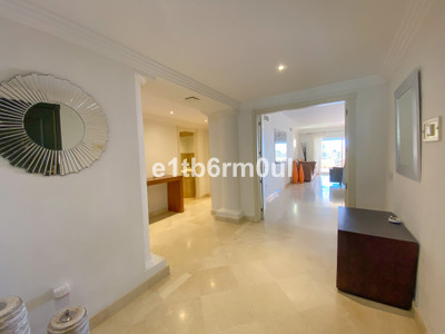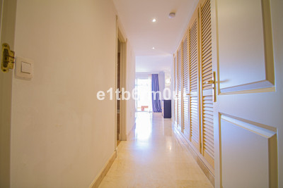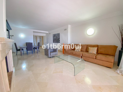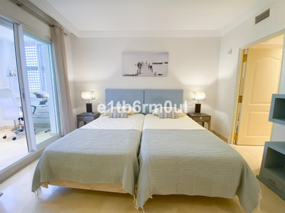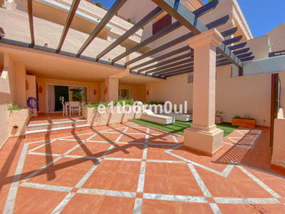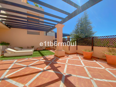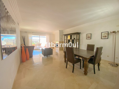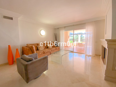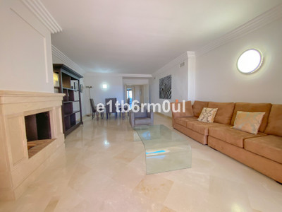 Fully secure gated community offering 24hr security, three outdoor pools, a gym, tennis court, and an indoor swimming pool. Surrounded by golf course in the Golf Valley of Nueva Andalucia this is a perfect apartment for a golf lover. The accommodation consists of a large entrance hallway, galley kitchen with breakfast seating area and laundry room. Large living / dining room with working fireplace. Guest WC. Both bedrooms are ensuite with fitted wardrobes, one bedroom has access to a private terrace. Large terrace with space for a jacuzzi. Carparking space in the communal parking included.