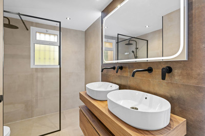 Recently completed after a full renovation, the apartment features a brand-new open-plan kitchen and living area with direct access to a spacious terrace and private garden — perfect for relaxing or entertaining. The large master suite also opens directly onto the terrace and includes a newly fitted ensuite bathroom. Two additional bedrooms with built-in wardrobes share a stylish modern bathroom with a large walk-in shower.