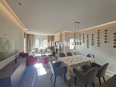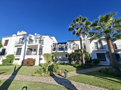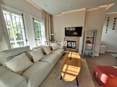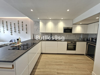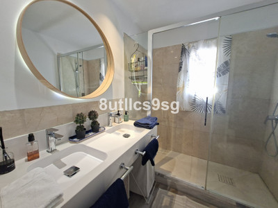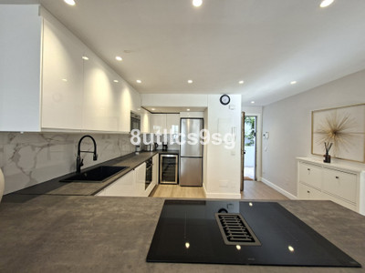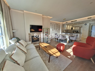 Nice & Modern corner ground floor apartment in the heart of Nueva Andalucia, Marbella, in the area of Aloha – Las Brisas, in the well-known Super manzana H. This property has been reformed recently this year 2025, and it’s located in a gated community and has 3 bedrooms and 2 bathrooms, one of them en suite, a large living room with fireplace, good size fully equipped kitchen and terrace overlooking the common gardens. The apartment has central air conditioning in all rooms and one numbered uncovered parking space inside the complex.