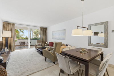This beautifully presented south-facing three-bedroom ground floor apartment is located in one of the most sought-after communities in Nueva Andalucía, Las Tortugas de Aloha. The property has been furnished to a high standard throughout, combining comfort with modern elegance.