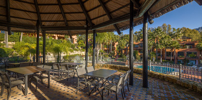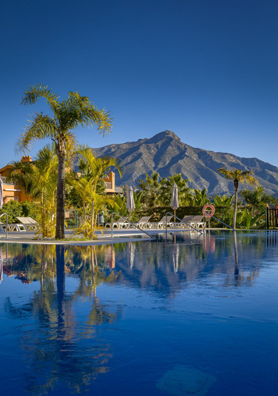 is a magnificent luxury residential complex located in La Cerquilla, one of the most exclusive and sought-after areas within the prestigious district of Nueva Andalucía, nestled between the renowned golf courses Las Brisas and Los Naranjos. The complex stands out for its impressive oasis-like appearance, featuring beautifully landscaped gardens that complement the elegant Mediterranean architecture, perfectly blending with the lush Andalusian hills overlooking the famous Golf Valley.