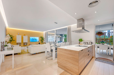 This exclusive, spacious 3-bedroom, 2-bathroom ground-floor apartment is located in a new development within walking distance of the vibrant Puerto Banús. Situated in a gated and secure community, the property offers access to a communal swimming pool and well-maintained common areas.