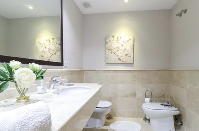 Within a short walk you will find the beach and the wide promenade, perfect for walking or cycling towards Puerto Banús. There are also nearby supermarkets and a sports centre with a gym and tennis courts. San Pedro town centre is approximately a 15-minute walk away, offering a wide selection of restaurants, the new boulevard and several children’s playgrounds.
