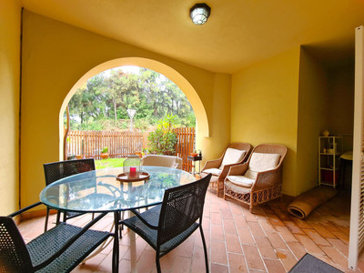 Located in one of the most sought-after residential areas of Sotogrande, this property is just a 5-minute drive from the beach, close to supermarkets, shops, and restaurants, with easy access to the motorway. Gibraltar is only 20 minutes away by car, and Malaga Airport is 90 minutes away. This ground floor apartment boasts 80m2 of living space, making it very spacious. It features a large living-dining room that connects to a spacious, partially covered private terrace with a private garden. There is a fully equipped independent kitchen, a full bathroom with a bathtub, and a large bedroom with a built-in wardrobe and access to the terrace. The property also includes a spacious parking space and a large storage room, as well as parking within the gated community, gardens, and a swimming pool. WE RECOMMEND YOUR VISIT!!