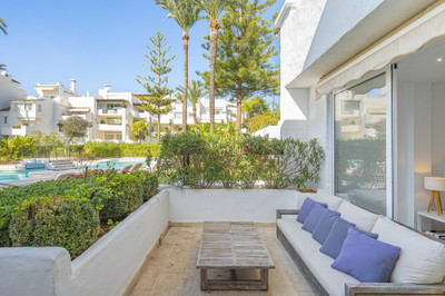 New on the market light-flooded apartment in the sought-after urbanisation Alhambra del Mar with great orientation and a great terrace. Originally it had only one bedroom but a second small bedroom has been added. The apartment has been partially renovated and enjoys great views of Alhambra del Mar's lush gardens and fountains. With the beach promenade and Capuccino only a few steps of distance, this real gem offers a fantastic opportunity to enjoy life by the sea or as an investment with a great rental potential.