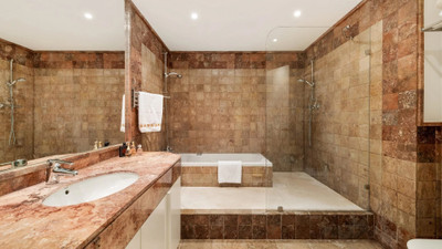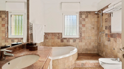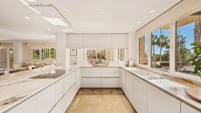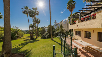 Ground Floor Duplex for sale in Las Cascadas, Marbella with 4 bedrooms, 5 bathrooms and with orientation south/east, with communal swimming pool, private garage (2 parking spaces) and communal garden. Regarding property dimensions, it has 397 m² built and 92 m² terrace. Has the following facilities transport near, air conditioning, fully furnished, fully fitted kitchen, utility room, basement, guest room, storage room, alarm, security entrance, double glazing, video entrance, dining room, security service 24h, guest toilet, private terrace, kitchen equipped, living room, study room, sea view, country view, automatic irrigation system, laundry room, internet – wi-fi, covered terrace, electric blinds, fitted wardrobes, gated community, garden view, pool view, tennis / paddle court, underfloor heating (bathrooms), close to children playground, close to golf, uncovered terrace, games room, glass doors, balcony, excellent condition, recently renovated / refurbished, close to shops, close to town, close to schools and office room.