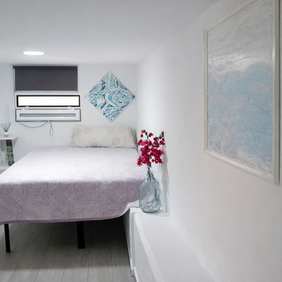 The apartment faces east, allowing plenty of natural light in the mornings, and is located just 900 metres from the sea. It currently features a spacious double bedroom, a fully fitted bathroom, and an open layout that offers multiple possibilities for personalisation. The property is partially renovated, giving the future owner the chance to complete and adapt the space according to their own style and needs.