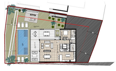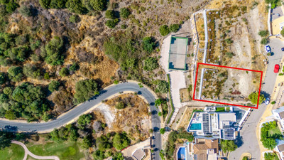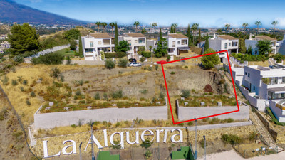 Residential plot for sale in a gated community in Benahavis by La Alqueria. The plot is 588m2, west facing with open views to the golf. There is a basic construction project in place for a villa of 435m2. A fantastic plot in a privileged location close to local amenities, a short drive to the beach, Marbella and Puerto Banus.