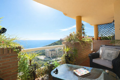 If you want SEA VIEW this is the ideal 2 bed / 2 bathrooms (one en suite) apartment in upper Calahonda. The apartment is a very well maintained property., As you enter you will find the kitchen on your left hand side. The dinning room/lounge with a log fire give to a decent size terrace where you can enjoy the unobstructed view of Mediterranean sea. The master bedroom with an ensuite bedroom has direct access to the terrace. As for the the guest bedroom has the bathroom just outside in the corridor. .
