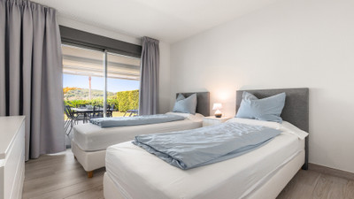 The property features two comfortable double bedrooms with fitted wardrobes and two generous bathrooms, one of which is en-suite. Every detail has been carefully maintained, making the apartment move-in ready. Modern comforts include air conditioning, electric blinds, and solar panels that add an eco-friendly touch. A private parking space and storage room are also included.