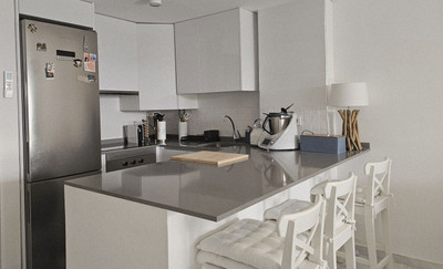A bright and modern first-floor apartment located in the peaceful Doña Julia Golf Resort, Casares Costa. The property offers a functional layout with an open-plan living area, a fully equipped kitchen, two bedrooms, and two bathrooms.