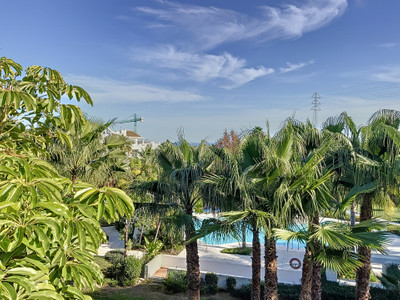 Apartment for sale in Alcazaba Lagoon, Casares with 2 bedrooms, 2 bathrooms and with orientation south/west, with communal swimming pool and communal garage (1 parking spaces). Regarding property dimensions, it has 87.03 m² built and 12.22 m² terrace. Has the following facilities amenities near, fully furnished, fully fitted kitchen, utility room, marble floors, gym, security entrance, double glazing, telephone, private terrace, living room, separate apartment, country view, mountain view, internet – wi-fi, fitted wardrobes, gated community, lift, garden view, pool view, street view, doorman, close to children playground, close to sea / beach, close to golf, uncovered terrace, balcony, handicap accessible, excellent condition, ceiling cooling system, ceiling heating system, saltwater swimming pool, close to shops, close to schools, surveillance cameras, pets allowed and internet – fibre optic.