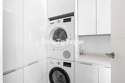 The finishes throughout the apartment are of high quality, enhancing every corner with elegance and attention to detail. The modern open kitchen with Siemens appliances and a breakfast bar is perfect for hosting, and connects to a utility room.