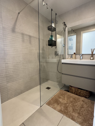 For sale a unique, cozy apartment with two bedrooms and two bathrooms, located just 300 meters from the wide, sandy beach. It is located in a quiet area, in a new building, with easy access to all amenities – nearby shops, restaurants, as well as famous venues such as La Plage Casanis, The Beach House and La Scala.