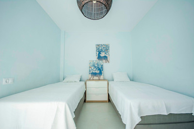 The living room, flooded with natural light thanks to large windows, opens onto a private terrace with panoramic views, providing the perfect setting to enjoy the warm climate of the Costa del Sol. The kitchen, equipped with modern appliances and elegant countertops, is a functional and aesthetically pleasing space for cooking enthusiasts.