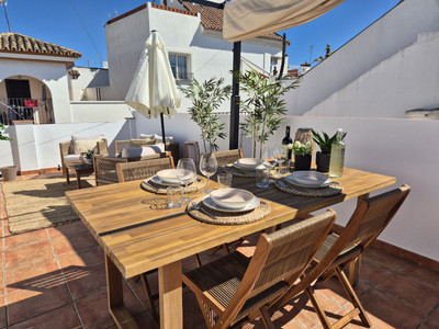 Located on the first floor of a two-story building, the apartment includes exclusive access to a fantastic rooftop terrace—perfect for al fresco dining or soaking up the sun. A great choice for those seeking a cozy getaway in Estepona, with excellent rental potential.