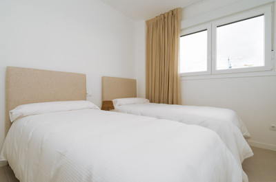 Situated on the 1st floor, this bright and airy apartment boasts a spacious living room with an open, fully equipped kitchen, leading to an East-facing terrace with partial sea views. The two generous double bedrooms are West-facing, offering lovely views of the garden and pool.