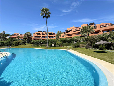 Located on the first floor, this magnificent property offers privacy, comfort, and an unbeatable natural setting. Just 200 meters from exceptional beaches, it is set within a beautifully maintained residential complex featuring lush tropical gardens and a large year-round swimming pool. Ideally situated between the ports of Estepona and La Duquesa—both just a 5-minute drive away—where you'll find a wide variety of shops, restaurants, entertainment options, and prestigious golf courses.