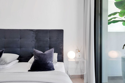 With 91 m² of elegant interior space and an impressive 81 m² terrace, this home is designed for the Mediterranean lifestyle. The spacious open-plan kitchen and living area connect seamlessly to the expansive terrace through floor-to-ceiling sliding glass doors, creating a light-filled environment perfect for both entertaining and relaxation.
