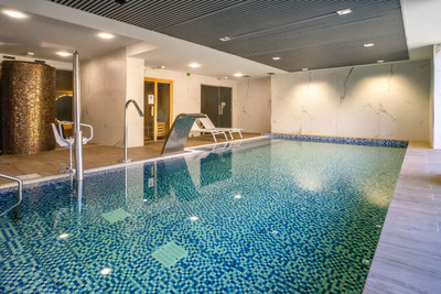 Two well-proportioned bedrooms and two modern bathrooms complete the interior. The apartment is sold with a private underground parking space and a storage room, offering additional convenience and practicality.