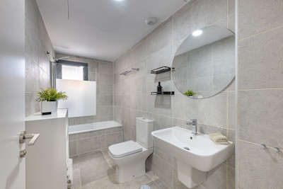 This modern two-bedroom apartment is located in the heart of Estepona, near the beach, shops, schools, and parks. With easy access to both the A-7 coast road and the AP-7 motorway, the location is ideal for getting around the Costa del Sol. Marbella is a 20-minute drive, and the area is well-connected by public transport too. Supermarkets, pharmacies, and cafés are all nearby, and several international schools and medical centres are within a short drive. The surrounding area offers excellent sports and leisure options, including golf courses, gyms, and the popular La Lobilla dog park just around the corner.