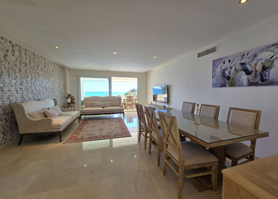 This impeccably presented 3-bedroom apartment boasts the perfect position within this beachfront complex with frontal sea views, is the perfect home to enjoy the wonderful Andalusian way of living. Upon entering the property there is a landing that leads to all the spaces inside the property. On the right of the entrance is a spacious fully equipped kitchen with white cabinets and with its adjacent laundry room. On the other side of the entrance hall is the spacious living room leading directly to the sunny terrace that overlooks the manicured garden and the mesmerizing Mediterranean. Further inside the house, a corridor leads to the 3 bedrooms, including a great master bedroom with en-suite bathroom the. The 2 other bedrooms are spacious with wardrobes and share the other terrace. Part of the luxury community of Los Granados Playa, the property benefits from the highest security and service levels including 24/24 private security, CCTV system, and concierge. The complex offers to its residents a wide range of amenities including several tennis and paddle tennis courts, fully equipped gym, two superb swimming pools, tropical garden and plenty of outdoor parking spaces. There is a coded door leading directly to the promenade and the beach in front of the complex. Private underground parking space and storage room included.