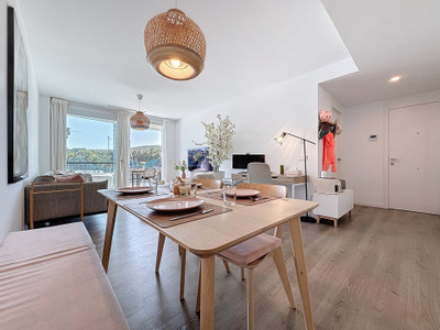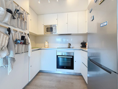 The interior has been designed in a modern Mediterranean style with high-quality materials. The open-plan kitchen, fully equipped (refrigerator, oven, ceramic hob, etc.), opens onto a welcoming living area that extends seamlessly to the outside.