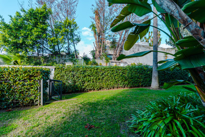 From the private terrace and garden, the apartment enjoys open views across the beautifully maintained tropical gardens and communal swimming pool, as well as partial views of the Mediterranean Sea. The property also includes an underground parking space and a private storage room.