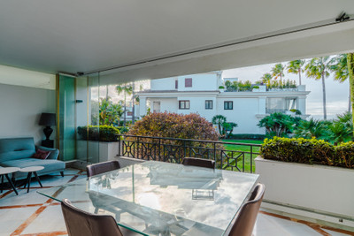 Located within the prestigious gated beachfront development of Doncella Beach in the prime residential area of Seghers, Estepona, this elegant ground floor apartment offers refined Mediterranean living in one of the most exclusive frontline communities on the Costa del Sol.