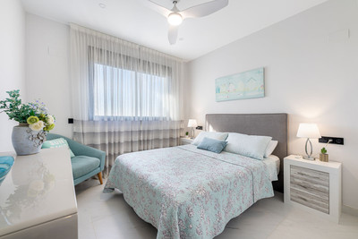An immaculate and rarely available 4-bedroom apartment located in the prestigious Mirador de Estepona Hills. This spacious home offers four generous bedrooms with fitted wardrobes and three modern bathrooms (one en suite). The state-of-the-art fully fitted kitchen includes a separate utility room.