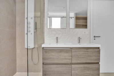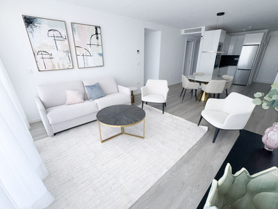 This modern 3-bedroom, 2-bathroom apartment is located in the most privileged position within one of the most know complexes within La cala de Mijas — in the front row, on the lower tier, closer to the pedestrian gate. This ensures panoramic, unobstructed sea views with no buildings in front and zero possibility of future construction blocking the scenery.