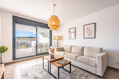 Upon entering, you are welcomed by an elegant entrance hall that leads into a large living–dining room. This bright space features a wide window that opens onto a southwest-facing covered terrace, perfect for enjoying the sun throughout the day.
