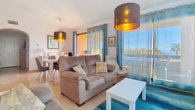 Located in a prestigious residential area close to the Duquesa marina, this apartment offers beautiful views of the sea and the golf course.