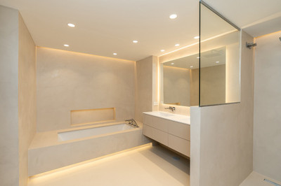 * Micro-cement bathrooms with underfloor heating