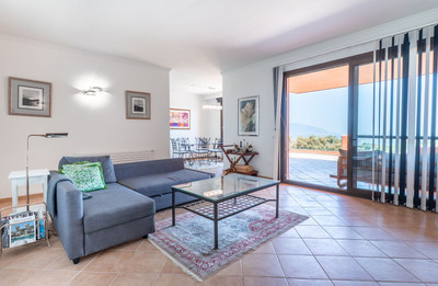 This spacious 3-bedroom, 2-bathroom apartment offers 144 m² of built space and 52 m² of terraces. The bright open-plan living and dining area features a charming fireplace and sliding glass doors that lead out to the main terrace — ideal for enjoying the surrounding nature and views. The newly renovated kitchen is fully equipped with modern appliances and finishes.